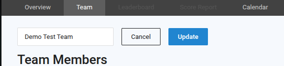 All players on a team can change the name of the team by clicking on the blue editable text in the upper left side of the page.