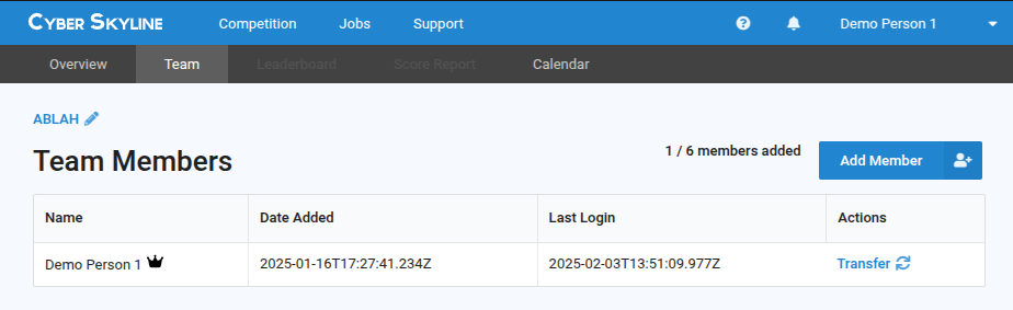 The Cyber Skyline platform was designed with teams in mind, allowing customization of the team roster.&#x20;