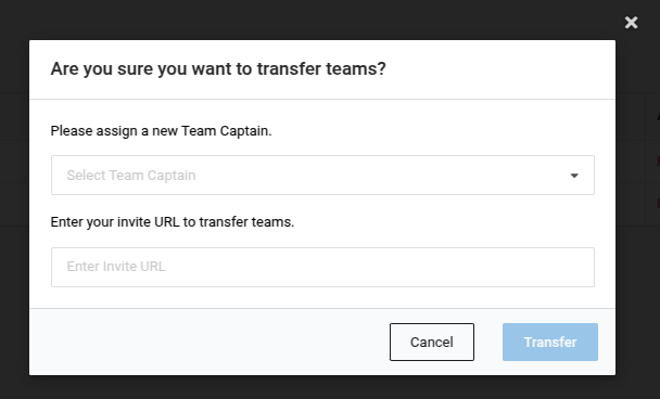 All players also have the ability to leave or transfer to other teams. Unlike with the Remove button, if a player decides to leave the team or transfer to another team, the Invite URL will not change.